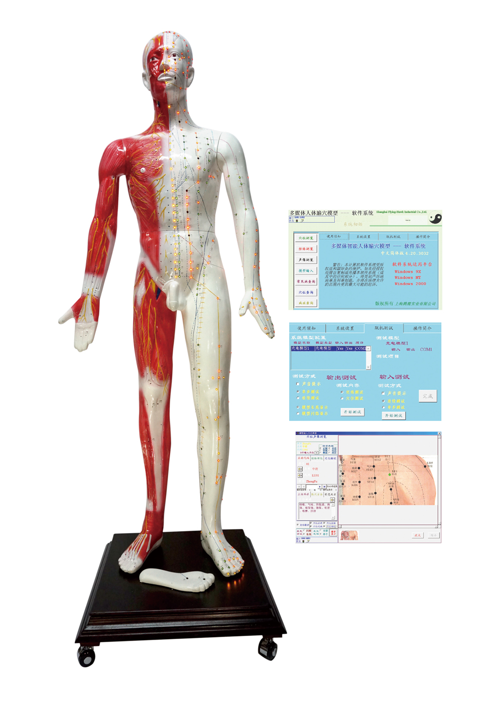 多媒體人體針灸穴位發(fā)光模型... 該系統(tǒng)融計算機技術、電子控制技術、多媒體技術、腧穴理論于一體;聲音、屏幕、人體模型同步控制筋絡腧穴的信息;顯示十二經(jīng)脈循環(huán)流注,經(jīng)脈絡屬表理對經(jīng)關系,特定穴的分布;加之屏幕表層、淺層、深層穴位解剖圖的配合,常見病的辯施治,隨證選穴的查詢及處理輸出,使學員對人體經(jīng)絡腧穴信息有更全方位的了解,更有利于加深印象與理解掌握;同時,亦可用于臨床與科研參考。